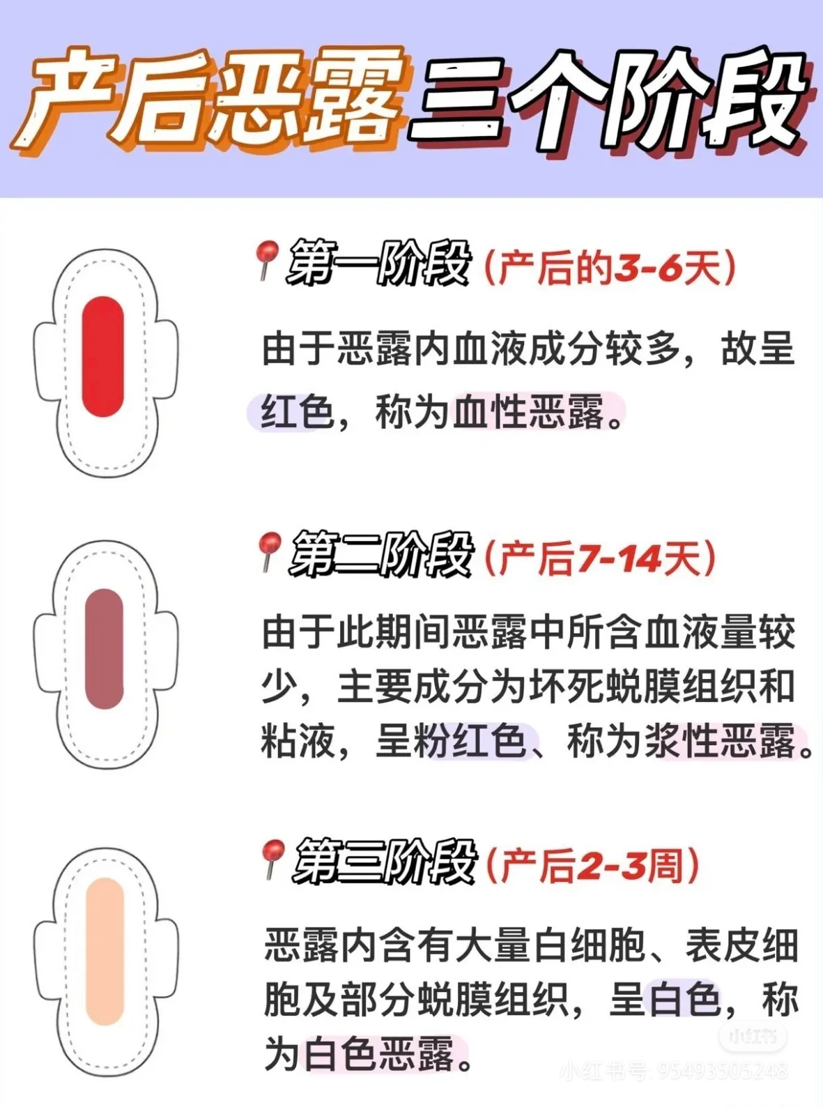 恶露的性状会随着时间推移而变化,一般分为三个阶段: