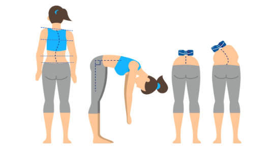 弯腰测试:双脚并拢,向前弯腰90度,让家人看看你的背部是否一边高一边低?