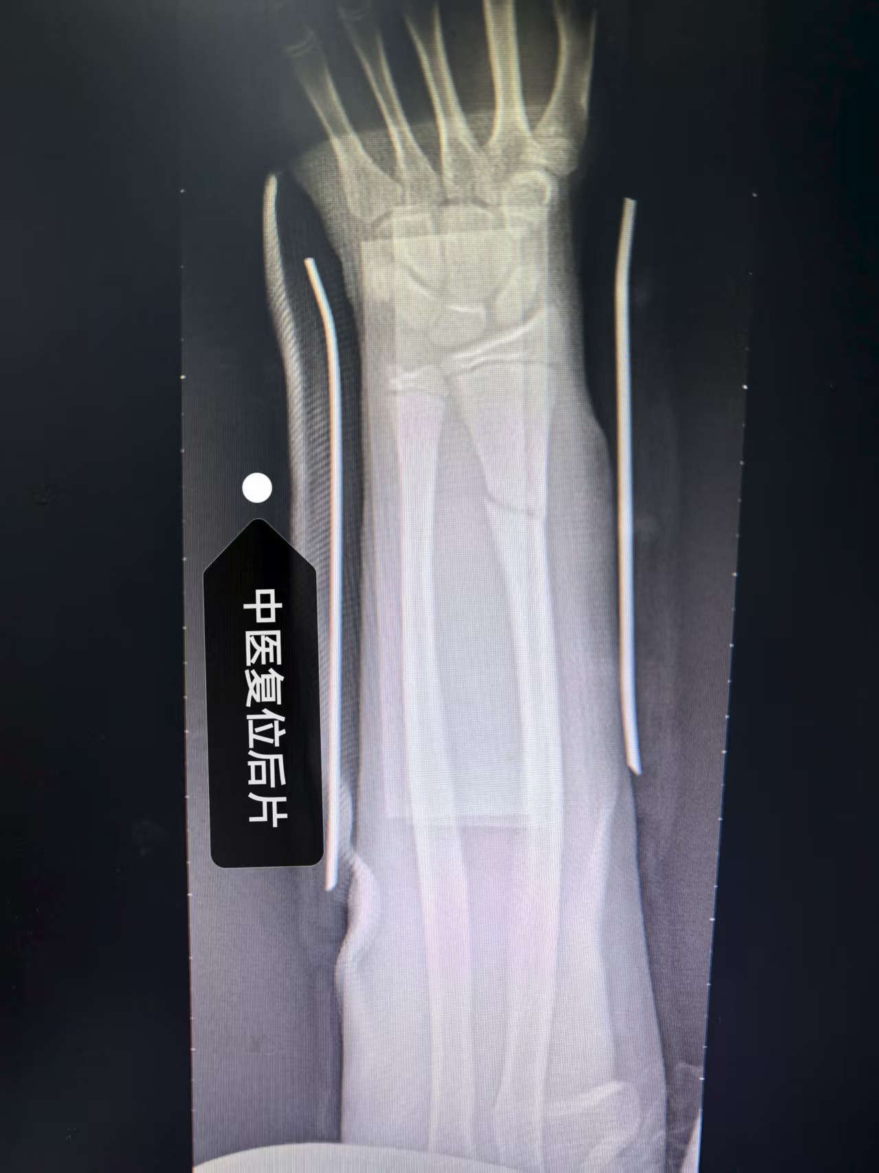 (一)基本情况:12岁的铭铭(化名)在玩耍中不幸摔倒,导致右前臂尺骨和桡骨(前臂两根骨头)严重骨折时,家人第一时间将他送往知名医院就诊。然而,DR片显示骨折错位明显,常规手法复位困难。医生严肃建议:必须进行切开复位内固定手术,这意味着孩子需要植入钢板钢钉,未来还需二次手术取出。对手术方案,铭铭父母充满顾虑:手术创伤、麻醉风险、不可避免的疤痕、二次手术的痛苦以及对生长发育的潜在影响,他们怀着最后一丝希望,带着临时固定的石膏,走进了武汉市中医医院骨科的大门。