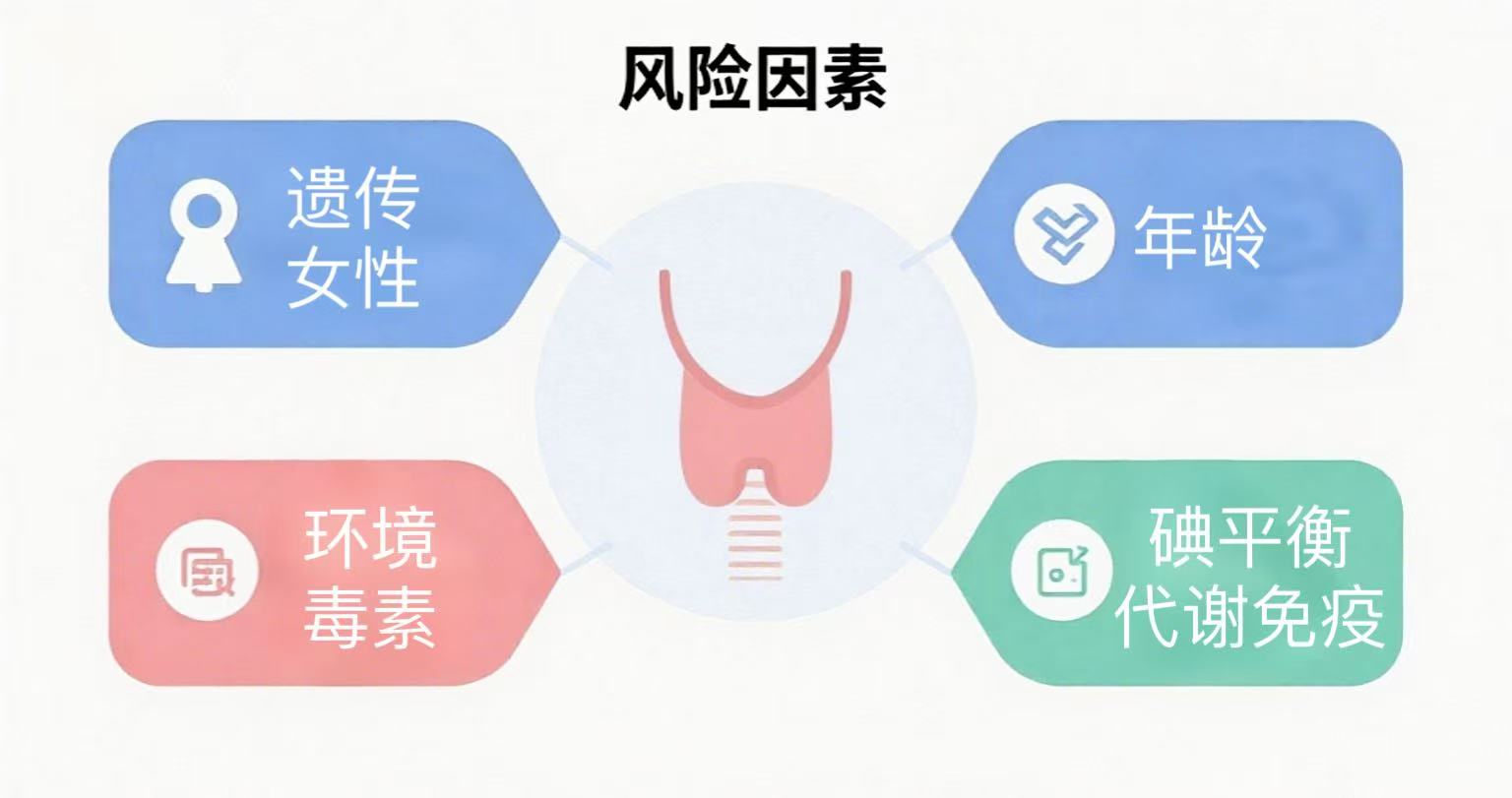 还有一些风险是我们可以主动干预的。碘的摄入非常关键,太多或太少都不好。沿海地区的居民常吃海产品,容易碘过量,每日超过六百微克就可能刺激结节形成。而内陆居民如果碘摄入不足,则可能出现甲状腺代偿性肿大。建议大家每年做一次尿碘检测,根据结果和居住地调整饮食。
