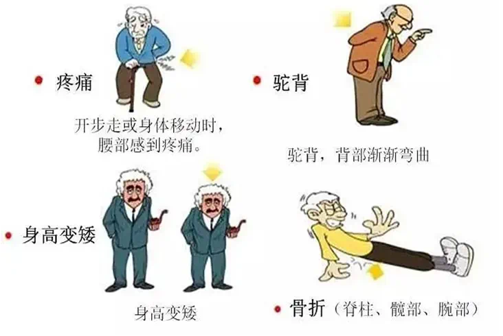 骨骼畸形:随着骨质疏松研究的越来越深入,弯腰驼背、身高变矮