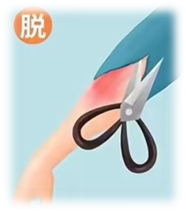 2.(脱-去除):在冷水冲洗的同时,小心脱去或剪开烫伤处衣物。切忌强行撕扯,若衣物已粘在皮肤上,保留粘连部分,仅剪去周围衣物,避免二次损伤。 |