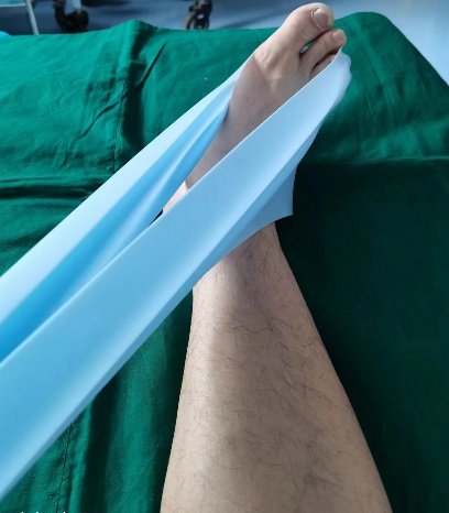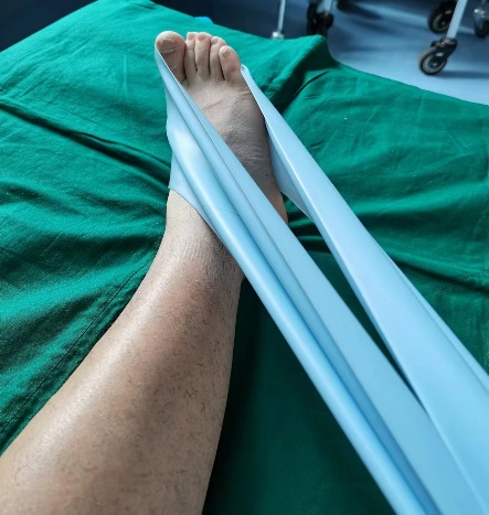 弹力带训练:用弹力带绕过脚掌,用双手拉住支撑,维持可以活动、但略有阻力的松紧度。将脚掌上下弯折,训练跟腱的肌力,接着向内外侧弯折(如图5)。