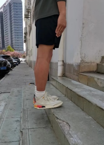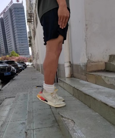 垫脚尖训练:从垫高(向心收缩)开始,再到慢慢往下放(离心收缩),(如图6)从两脚开始到单脚,从原地不动,到边垫脚尖走路,还有微微跳动。