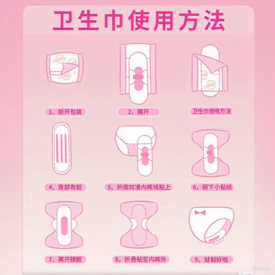 1.掌握卫生巾使用方法,正确储存