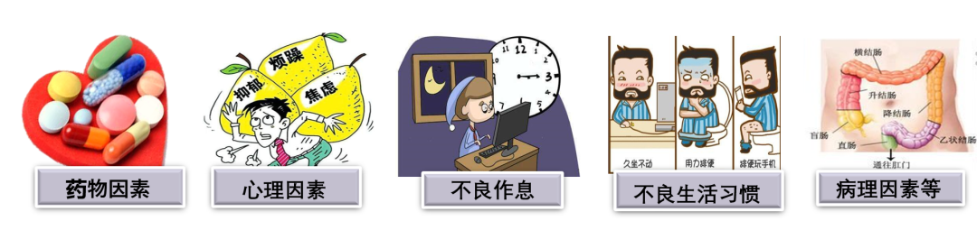 饮食不规律,膳食纤维摄入不足、饮水量不够 |