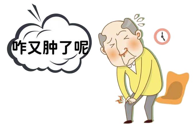 3. 肿胀: 关节因炎症渗出而肿痛,有时摸上去是软的(积液),有时是硬的(骨质增生)。
