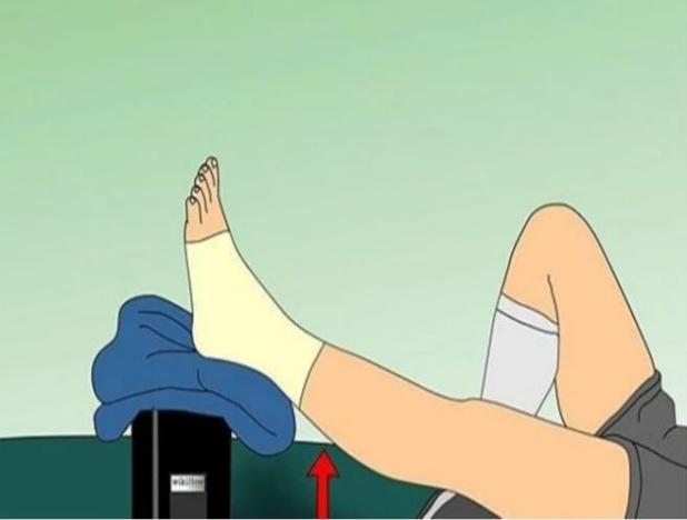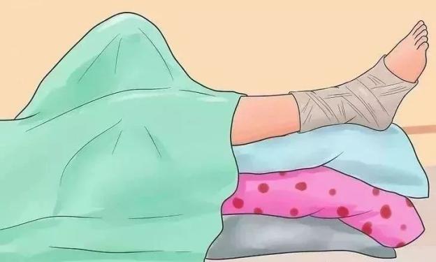 (5)抬高(Elevation):睡觉或休息时,在脚下垫一个枕头使患肢高于心脏10-20cm即可,这样做可以促进血液回流,达到减轻肿胀和疼痛的目的。