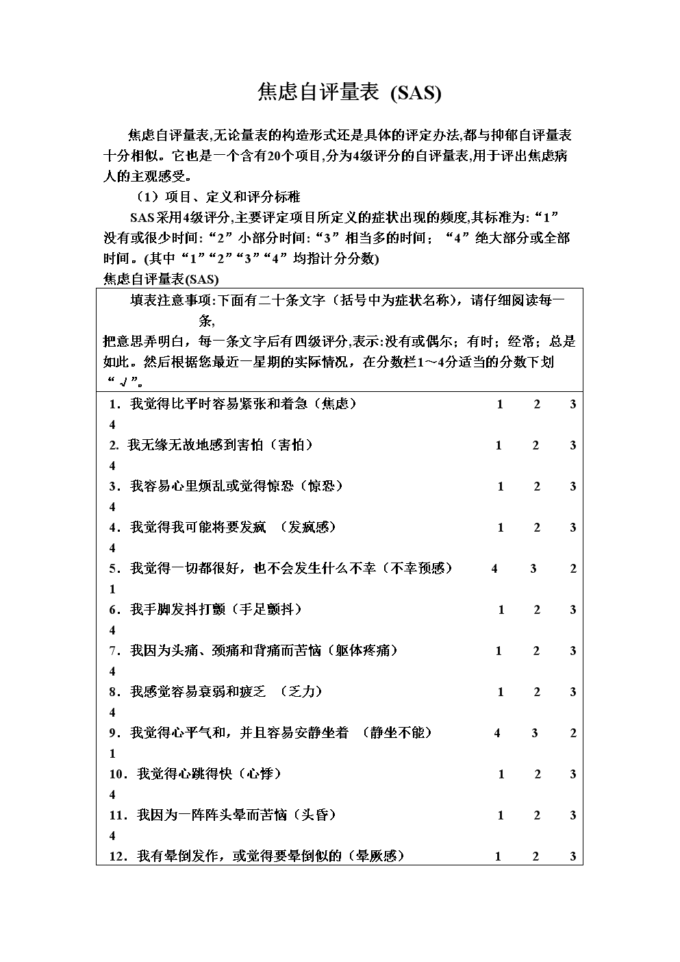 焦虑的评估