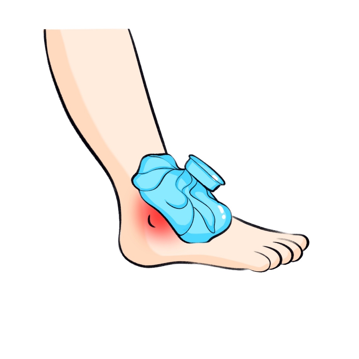3. I(Ice,冰敷):最重要的一步!用毛巾包裹冰袋(或冰水瓶)敷在最肿最痛的地方,每次15-20分钟,每隔2-3小时一次。冰敷能有效收缩血管,减轻肿胀和疼痛。切记不要热敷!早期热敷会加重肿胀,脚踝变“馒头”。(图2)