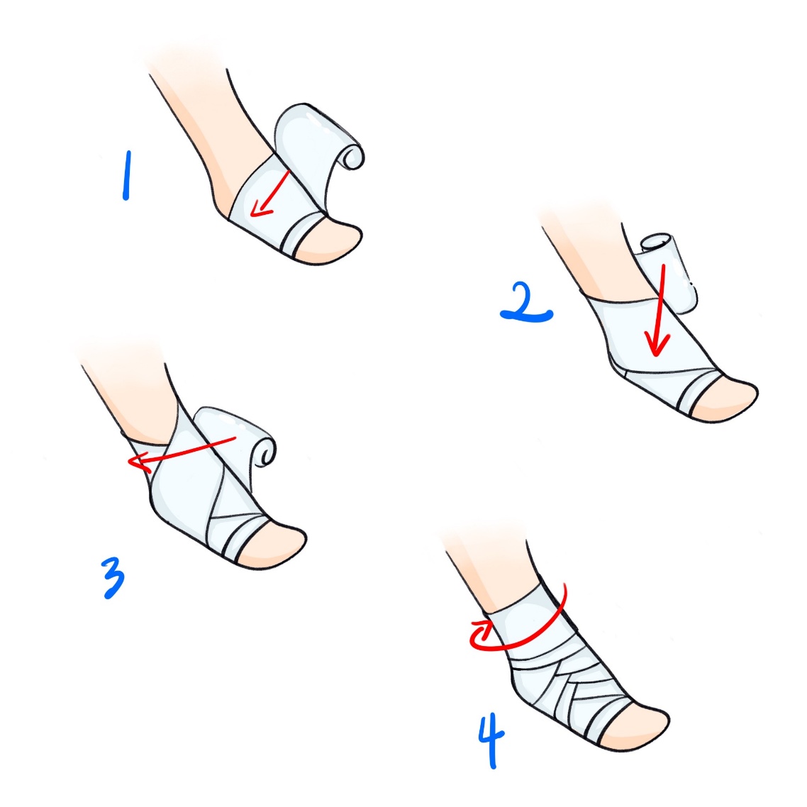 4. C(Compression,加压包扎):使用弹性绷带从脚趾远端向小腿近端包扎。压力要适中,以能插入一根手指为宜,不要过紧以免影响血液循环。(图3)