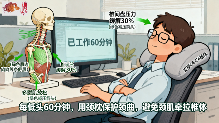 办公间隙护颈图,日常场景与解剖保护