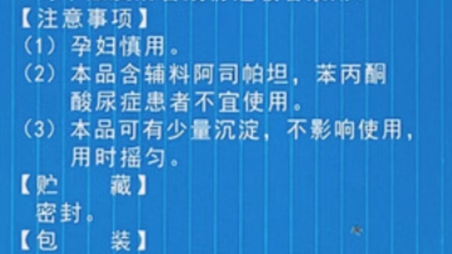 阿司帕坦:通常用于咀嚼片和无糖配方的药物中的甜味剂,慎用于患有常染色体隐性遗传性