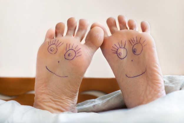 :用镜子检查脚底、趾缝,