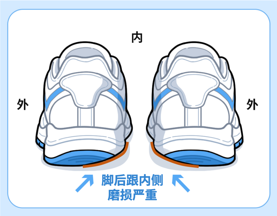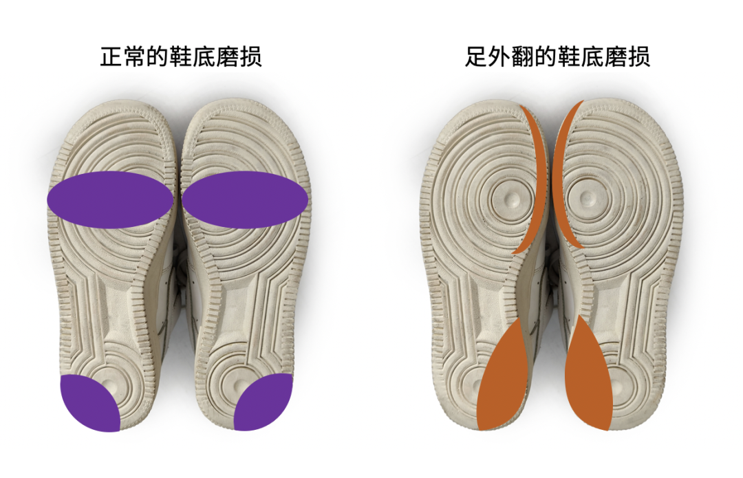 看看孩子常穿的鞋子的鞋底,若是鞋后跟内侧磨损明显,外侧几乎没有磨损,那可能就是足外翻了。