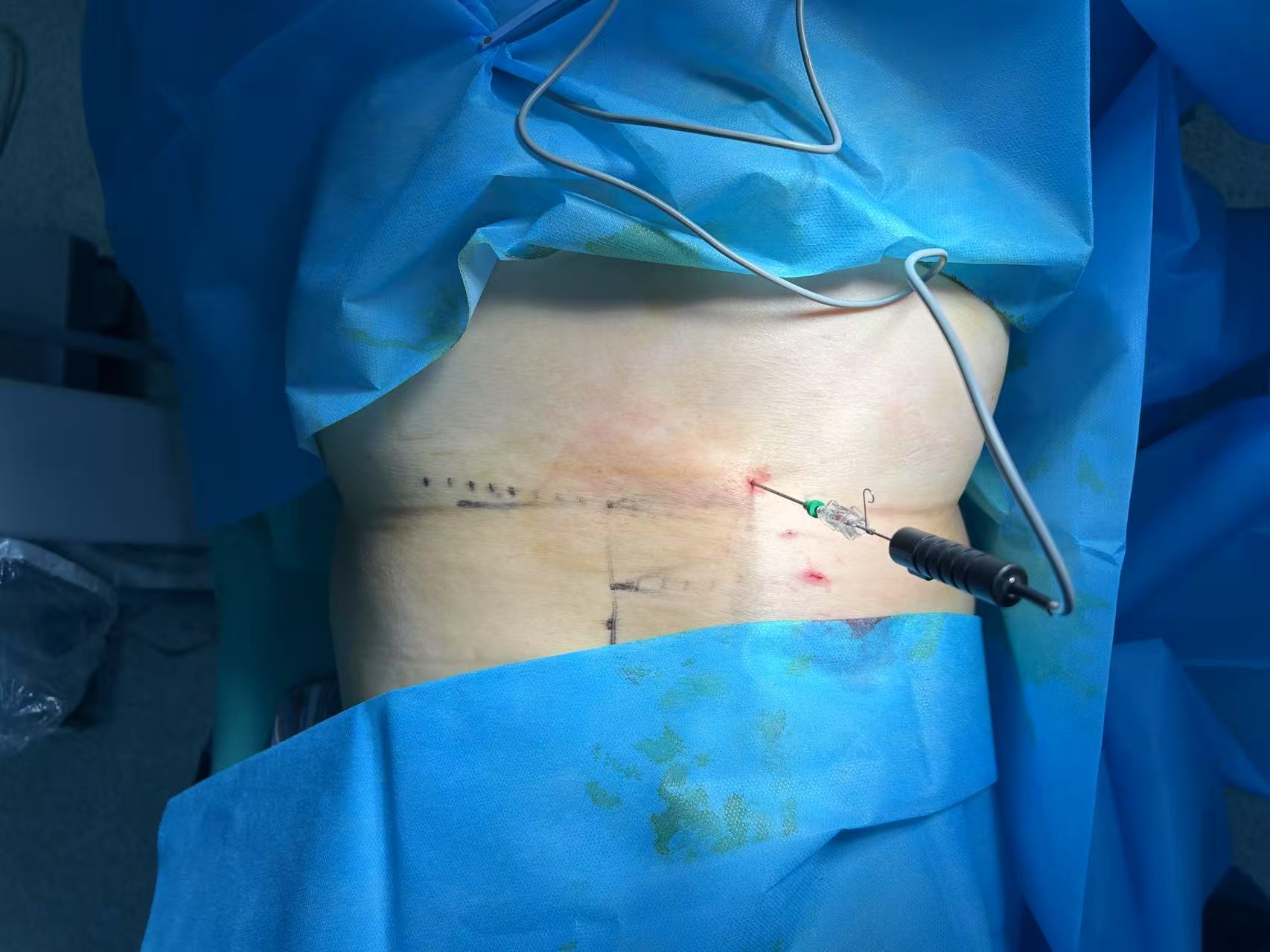 :患者通常采取俯卧位,医生会在腰部手术区域进行消毒、铺无菌巾,随后注射局部麻醉药(一般为利多卡因),麻醉过程中患者可能会感到轻微胀痛,但无明显疼痛。
