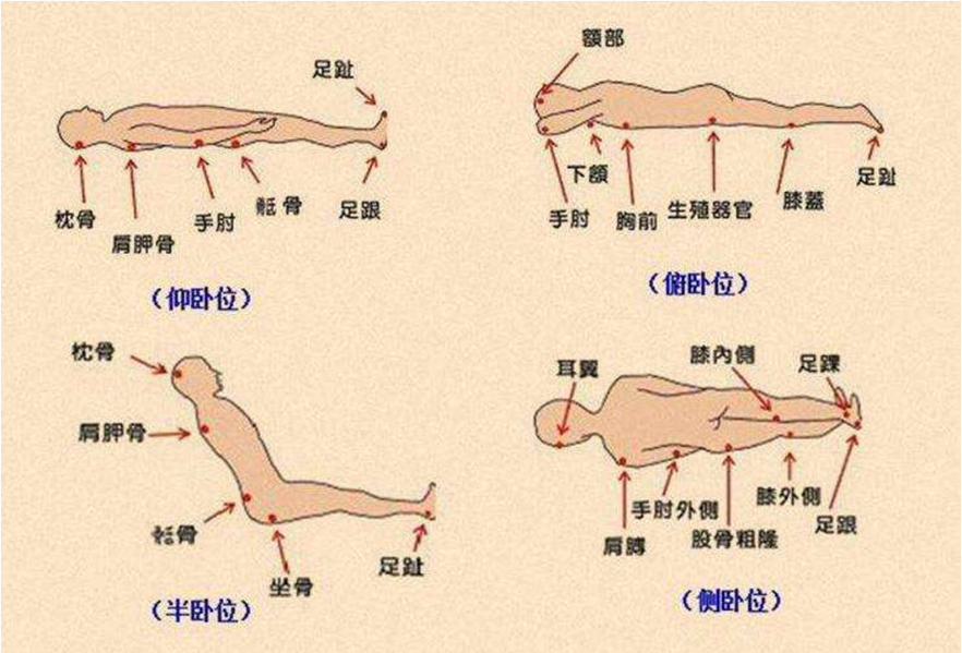 骨突起部位(骶尾部、足跟、肘部)长期受压,血液循环障碍,会导致皮肤红肿、破溃甚至坏死,一旦形成难以愈合且易继发感染 。