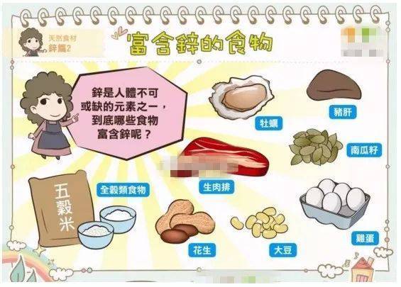 推荐食物:坚果(核桃、杏仁)、海产品(牡蛎、虾)、瘦肉、猪肝、南瓜子;