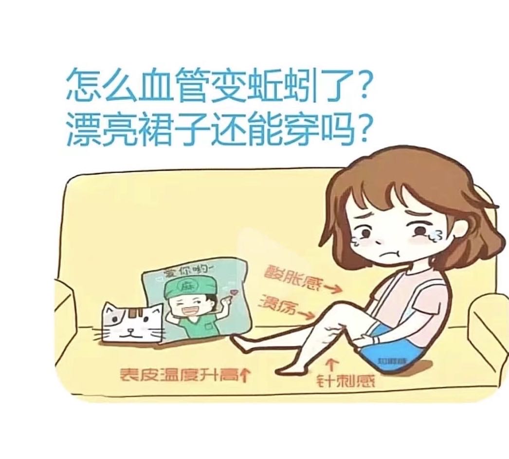 下肢静脉曲张俗称“蚯蚓腿”,是由于久站久坐,或先天性静脉管壁薄弱、静脉瓣膜功能不全,导致血液在静脉内蓄积,静脉内压力增大而出现的静脉迂曲扩张。