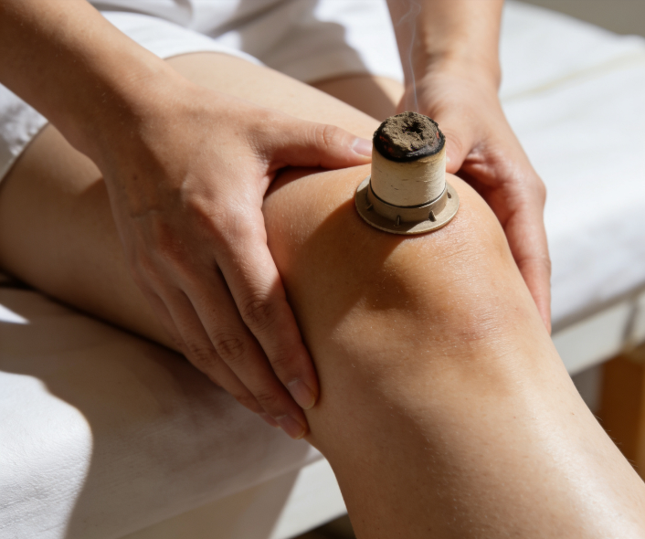艾灸疗法:适配寒湿痹阻、虚寒证患者。悬空灸将艾条悬于穴位或关节上方2-3厘米,灸15-20分钟/次、每日1次,重点灸肾俞、命门及局部穴;隔姜灸取0.3厘米厚姜片穿刺数孔,置穴位上放艾炷点燃,每穴3-5壮、每周2-3次。阴虚火旺、局部红肿热痛者禁用,灸后适量饮水。