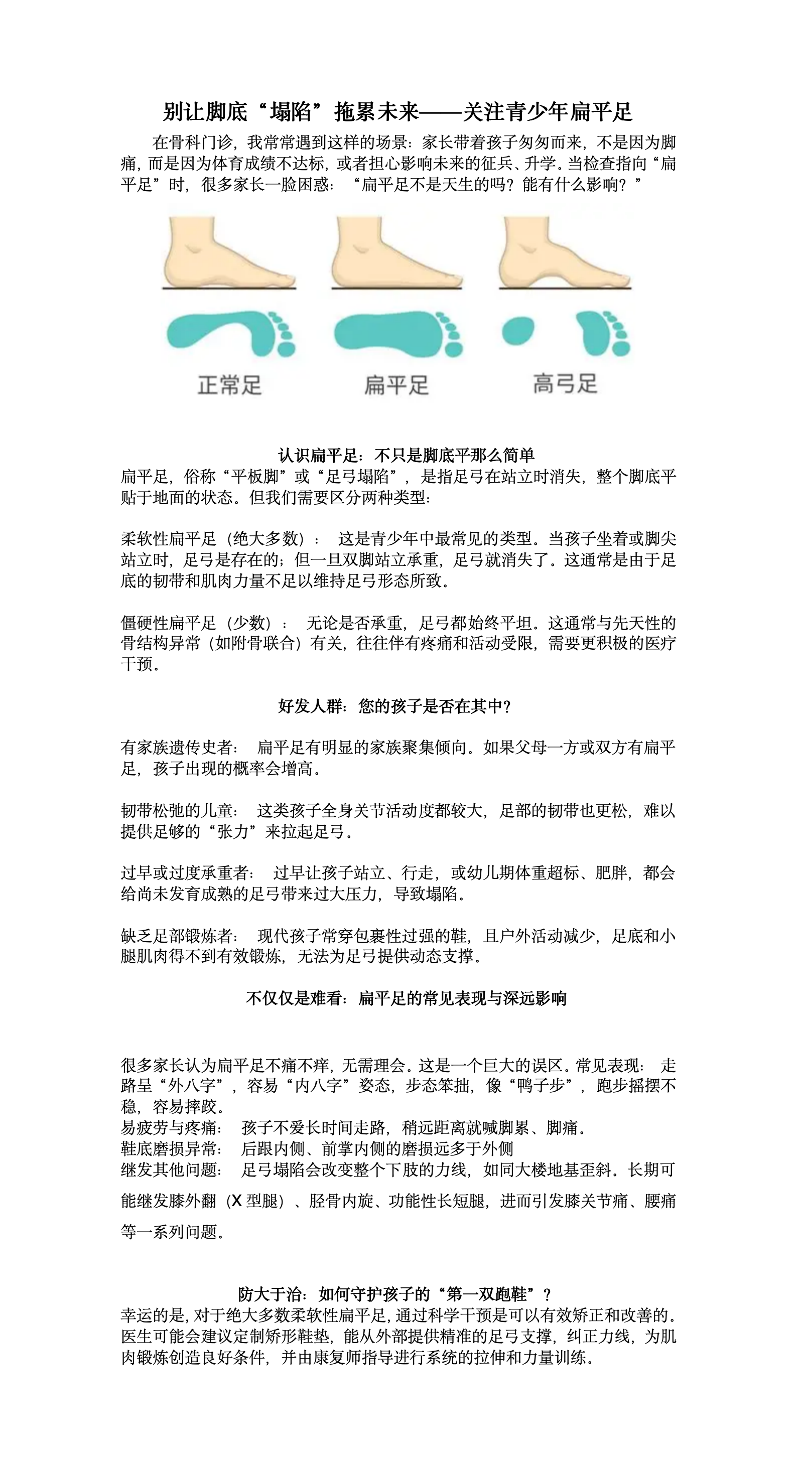 别让脚底“塌陷”拖累未来——关注青少年扁平足