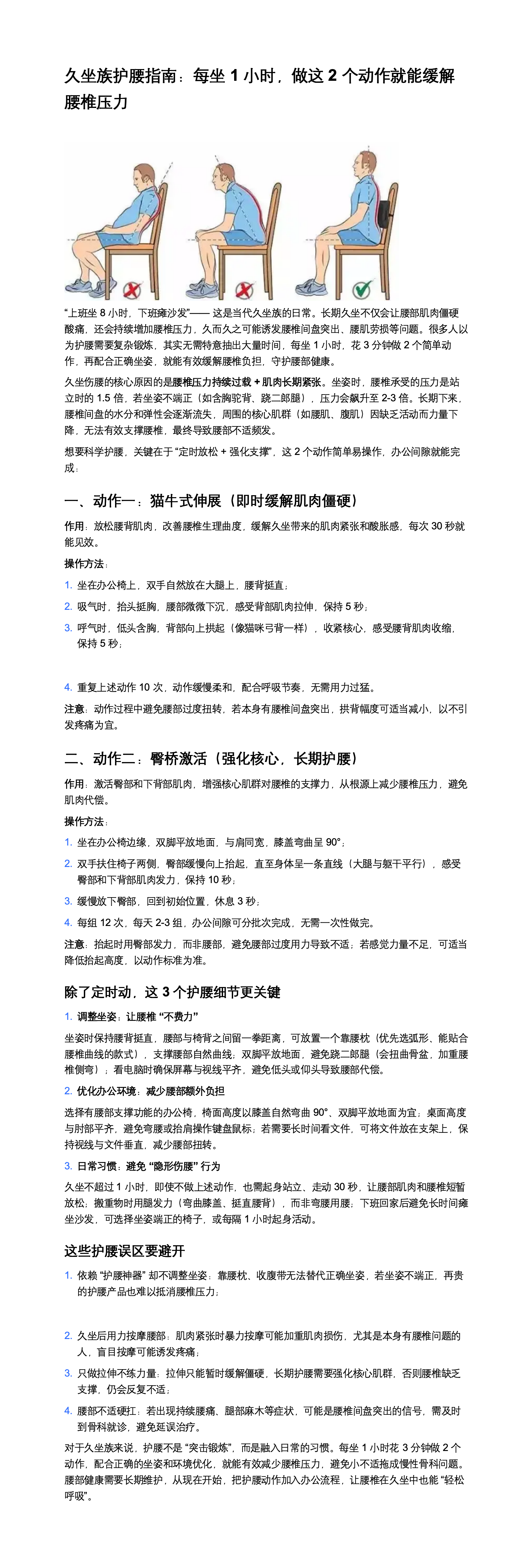 久坐族护腰指南:每坐 1 小时,做这 2 个动作就能缓解腰椎压力