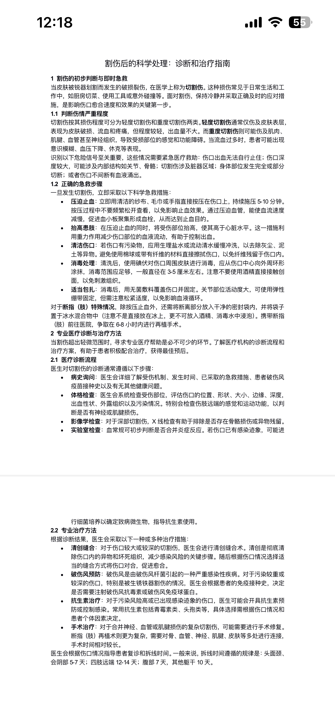 割伤后的诊断和治疗