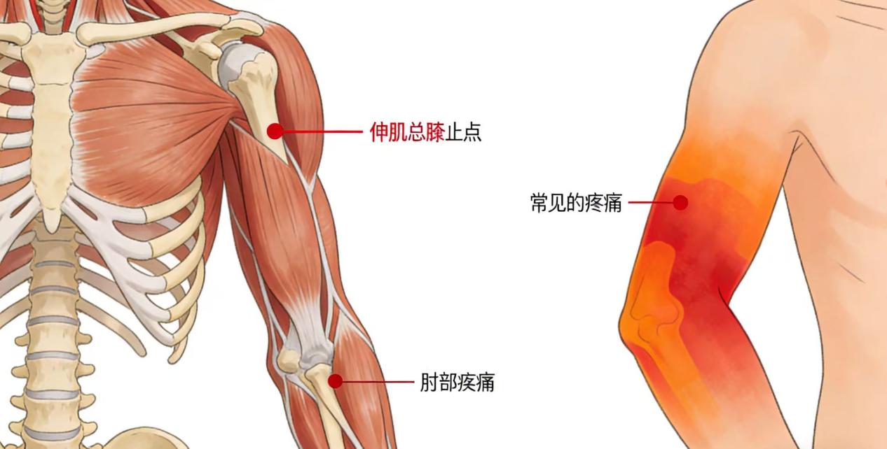 网球肘(医学名:肱骨外上髁炎)是前臂伸肌总腱的慢性损伤性炎症,因网球运动员高发而得名。其核心病因是前臂肌肉长期反复收缩、牵拉,导致肌腱止点(肘部外侧骨性突起处)劳损发炎,多见于长期用臂发力或保持固定姿势的人群,并非运动员专属。