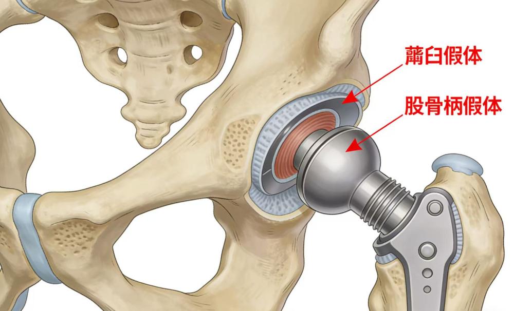 通过手术切除受损的髋臼软骨、股骨头,植入人工假体(由医用合金、陶瓷等材料制成),替代原有髋关节功能,消除疼痛、恢复关节活动度。