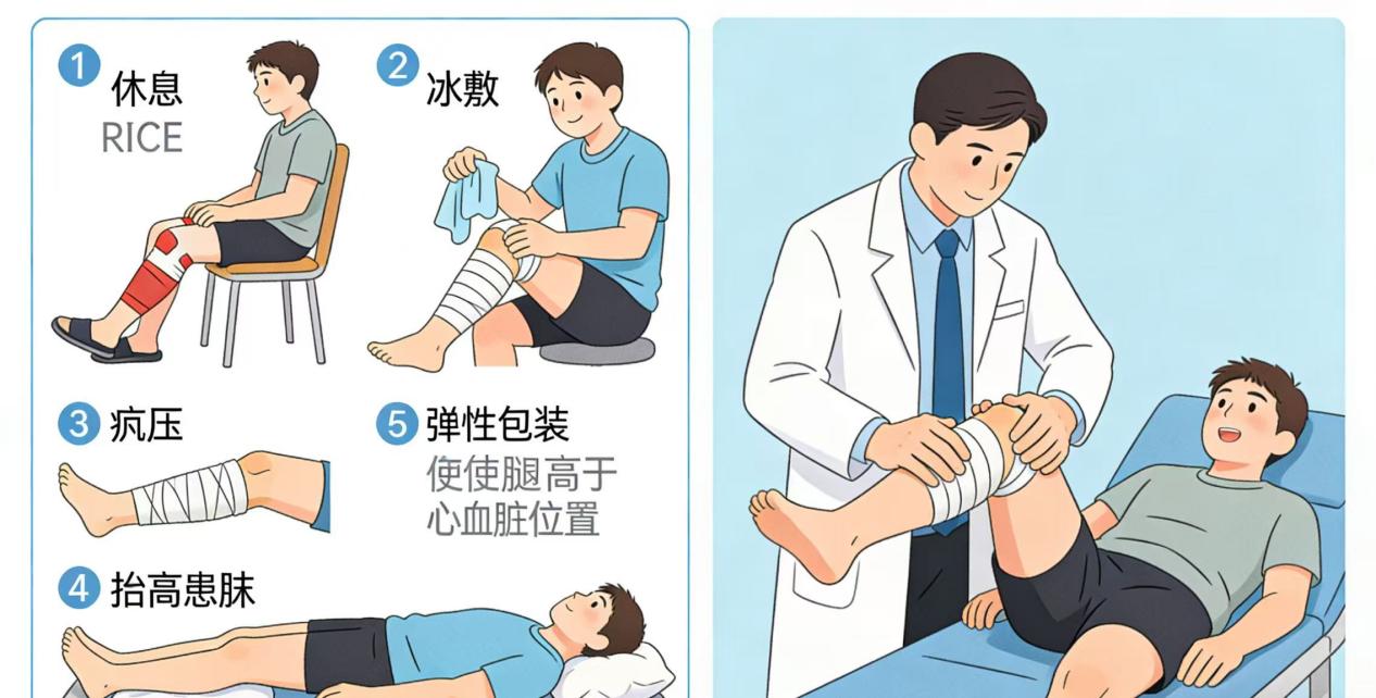 1. 现场急救(遵循RICE原则)