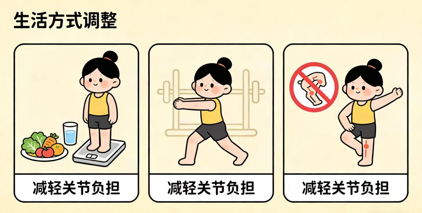 保护关节:避免膝关节外伤(如运动损伤、跌倒),外伤后及时治疗;