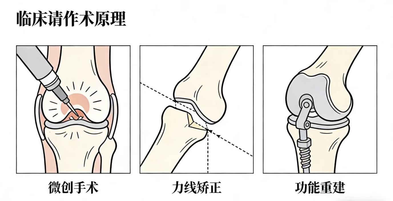 截骨术:矫正膝关节力线,减轻病变部位压力(适用于年轻、关节软骨磨损较轻者);